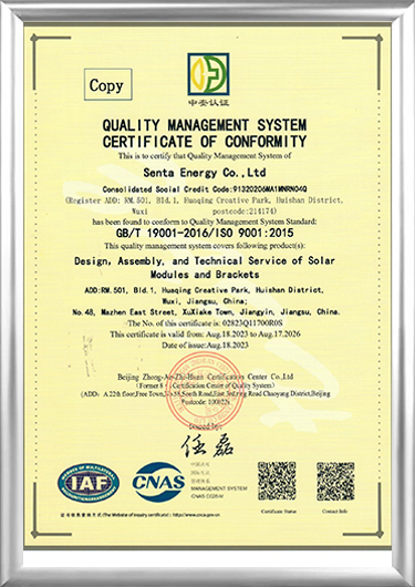 Fundada en 2016, Senta Energy Co., Ltd., ubicada en Wuxi, Jiangsu, es una empresa de alta tecnología dedicada principalmente a negocios de generación y almacenamiento de energía fotovoltaica de nueva energía, nuevas casas prefabricadas de construcción y nuevos negocios de plantación agrícola distribuida. Al integrar investigación y desarrollo, producción, ventas y servicios independientes, nos comprometemos a brindar a los usuarios globales soluciones generales para todo el ciclo de vida de energía inteligente, edificios inteligentes y plantaciones inteligentes.