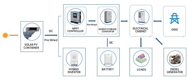 La corriente continua generada por el módulo solar se convierte en corriente alterna mediante el inversor, que luego se suministra a la carga y se conecta a la red. De esta manera, mientras se cubre la carga doméstica, el exceso de electricidad también se puede vender a la red.
